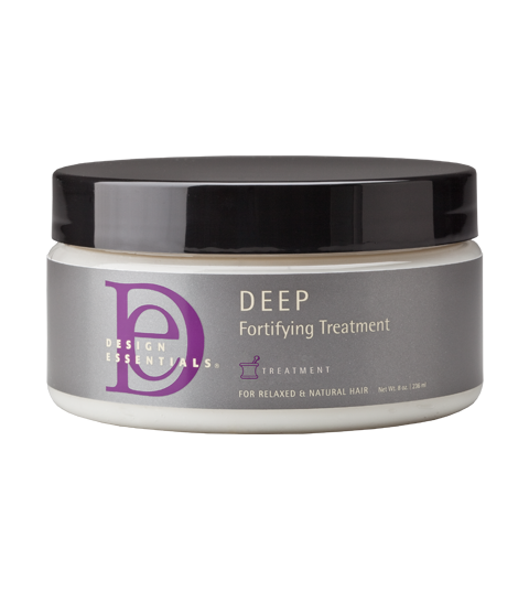 Design Essentials® DEEP Fortifying Treatment is an intensive reparative therapy. Infused with a hydrating trio of shea butter, olive oil, and honey, all designed to heal the most fragile of hair by reconstructing damaged hair and restoring hair strength, porosity, and elasticity. DEEP can be used us as a stand-alone strengthening treatment or it can be custom blended with additional Design Essentials® products for luxurious conditioning treatments that will add shine, infuse moisture, or replenish essential vitamins.